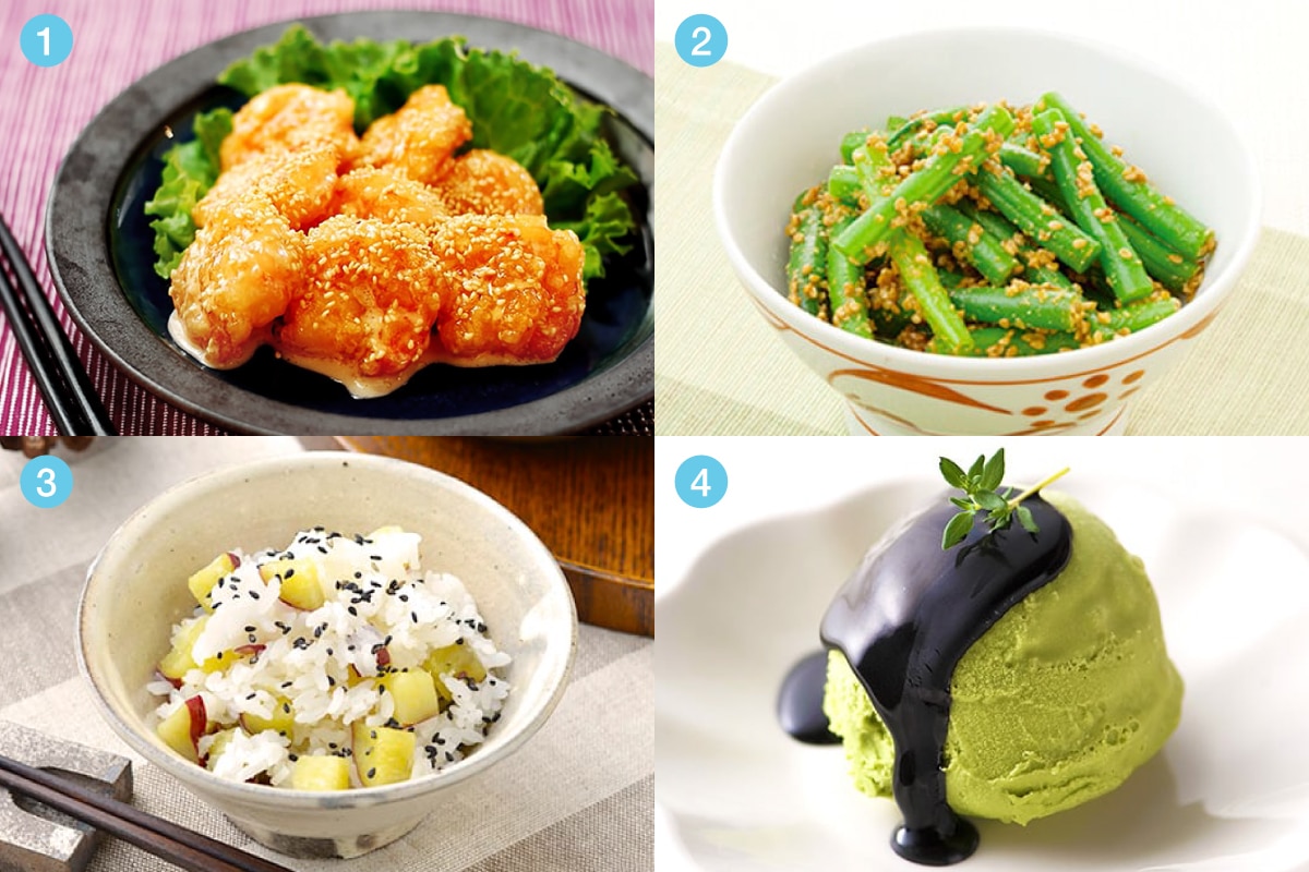 ごまには白、黒、金といった様々な色があり、和物やトッピングに使うことで、風味やコクだけでなく見た目の美味しさも演出します。