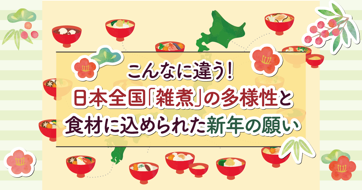 日本全国の雑煮の多様さに、「こんなお雑煮があるんだ!」と驚かれたことでしょう。ここで紹介したのはほんの一部で、他にもあらゆる種類のお雑煮が存在します。