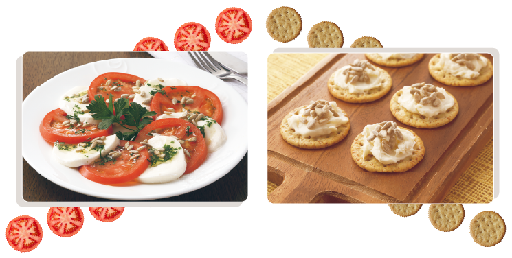 ローストしたひまわりの種に燻製の香りとまろやかな塩味。間食やサラダ、お料理のトッピングなどにも手軽においしくお使いいただけます。