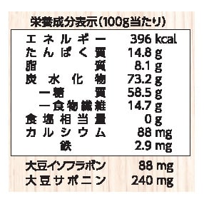 きな粉(大豆を含む、国内製造)、ぶどう糖、砂糖、食物繊維(イヌリン)、ムラサキイモ粉末、アサイーエキスパウダー、ブルーベリーパウダー、いちご果汁パウダー/ブドウ果皮色素、香料、酸味料