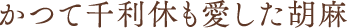 胡麻をまぶして焼いた「利休焼き(利久焼き)」や胡麻を加え煮つけた「利休煮(利久煮)」など、胡麻を使った料理はなぜか「利休」の名がついています。